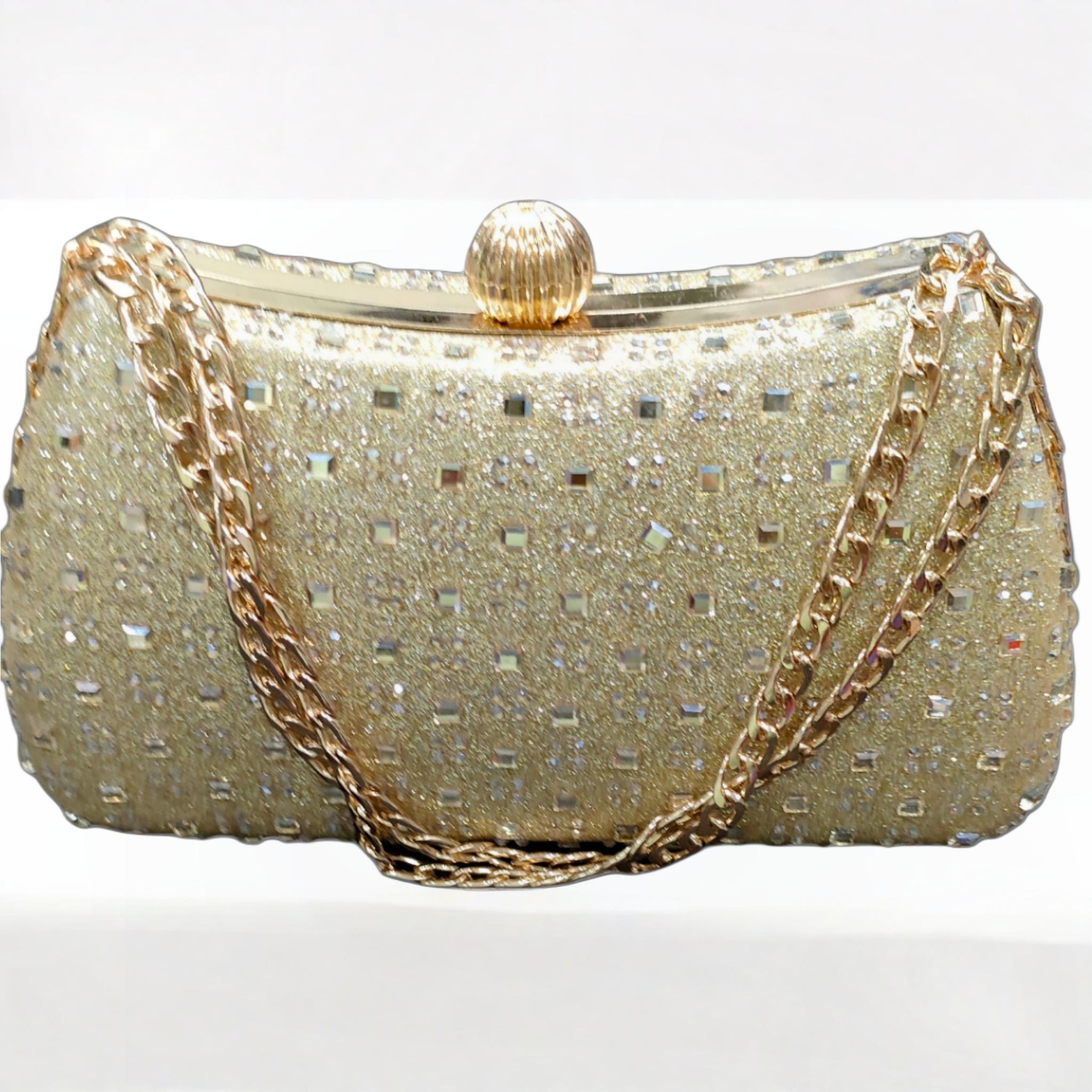 ঝলমলে গোল্ডেন ইভিনিং ক্লাচ ব্যাগ চেইন স্ট্র্যাপসহ