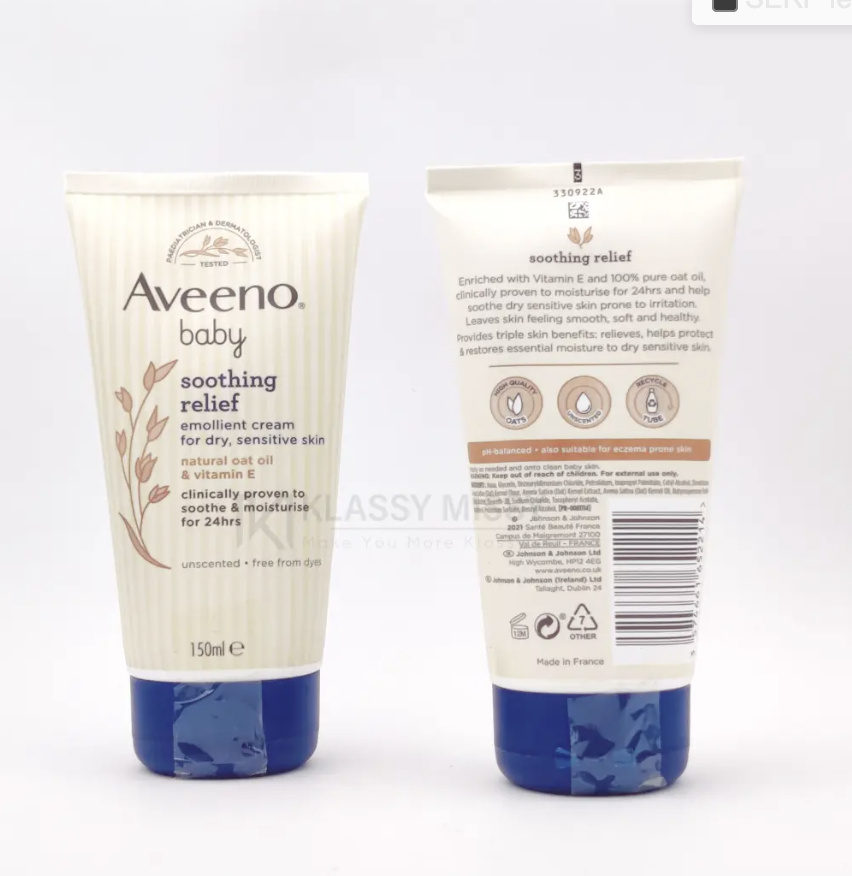 Aveeno Baby Soothing Cream is specially formulated to gently soothe and moisturize your babyâs delicate skin. Enriched with natural colloidal oatmeal and rich emollients, this cream provides long-lasting hydration and helps relieve dry, irritated, or sensitive skin. It is fragrance-free, paraben-free, and suitable for daily use on babies with eczema-prone or easily reactive skin.