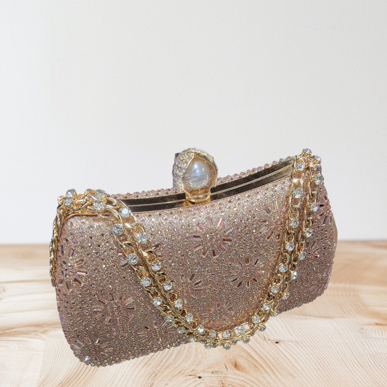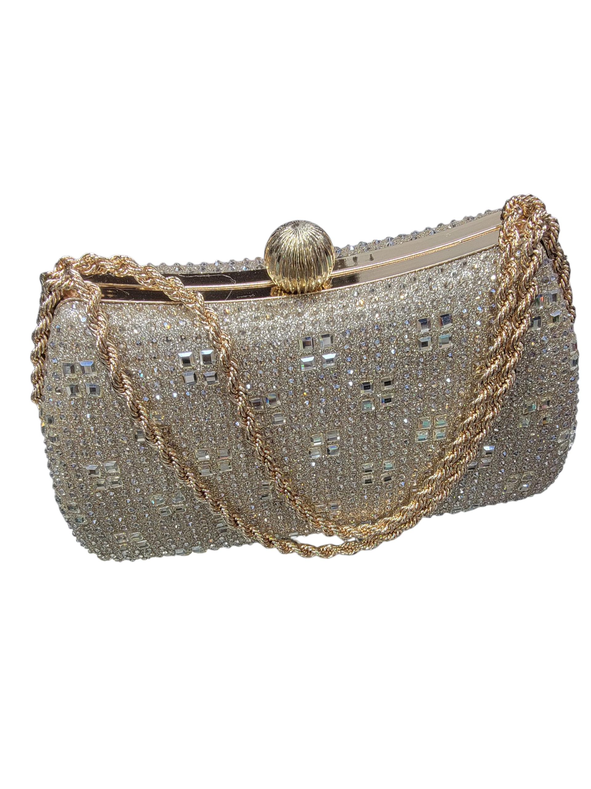 এটি একটি বিলাসবহুল পার্টি লেডিস ব্যাগ, যা ঝলমলে সোনালি রঙে তৈরি এবং সম্পূর্ণভাবে সূক্ষ্ম পাথরের নকশায় সজ্জিত। ব্যাগটির কাঠামো মজবুত এবং এলিগ্যান্ট, যাতে একটি স্বর্ণালী চেইন স্ট্র্যাপ যুক্ত রয়েছে, যা হাতে বা কাঁধে বহনের জন্য উপযুক্ত। উপরের দিকে গোল্ডেন শেল-আকৃতির ক্ল্যাম্প লক রয়েছে, যা ব্যাগটিকে আরও আভিজাত্যপূর্ণ ও নিরাপদ করে তোলে। বিশেষ অনুষ্ঠানে, পার্টি বা বিয়ের অনুষ্ঠানে ব্যবহার করার জন্য এটি একটি নিখুঁত ফ্যাশন এক্সেসরিজ, যা আপনার স্টাইল ও ব্যক্তিত্বে দেবে অনন্য আভা।